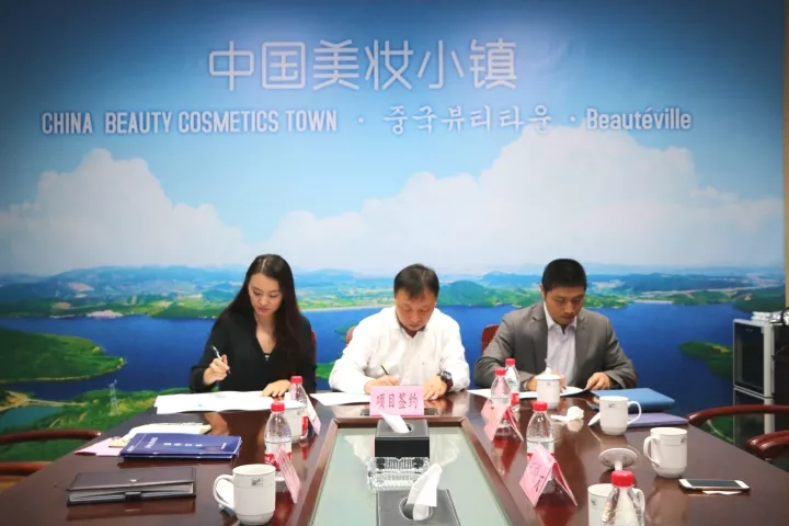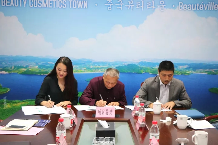 今天上午,苏州市金茂日用化学品有限公司、浙江佳翔辐照技术有限公司两企业同时签约入驻美妆小镇。美妆小镇管委会副主任、埭溪镇镇长陈勇杰、埭溪镇副镇长张健、化妆品产业(湖州)投资发展有限公司副总经理王亚男、苏州市金茂日用化学品有限公司董事长郑根大、浙江佳翔辐照技术有限公司总经理余翔等出席了签约仪式。