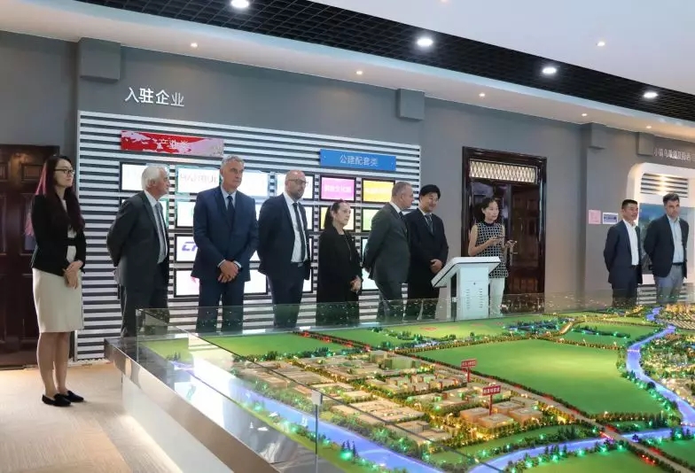 法国访问团参观中国美妆小镇沙盘、科技孵化园和检验检测中心