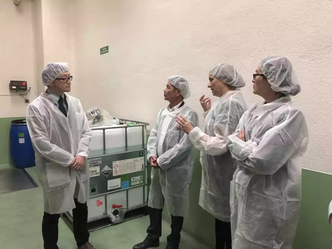 拜访结束后,在协会负责人陪同下,美妆小镇招商团队一行参观了两家西班牙本土化妆品生产企业,并与企业负责人开展了交流,美妆小镇总顾问侯军呈向企业介绍了小镇的发展,并邀请企业来到美妆小镇实地考察,与小镇企业开展合作,互利共赢。