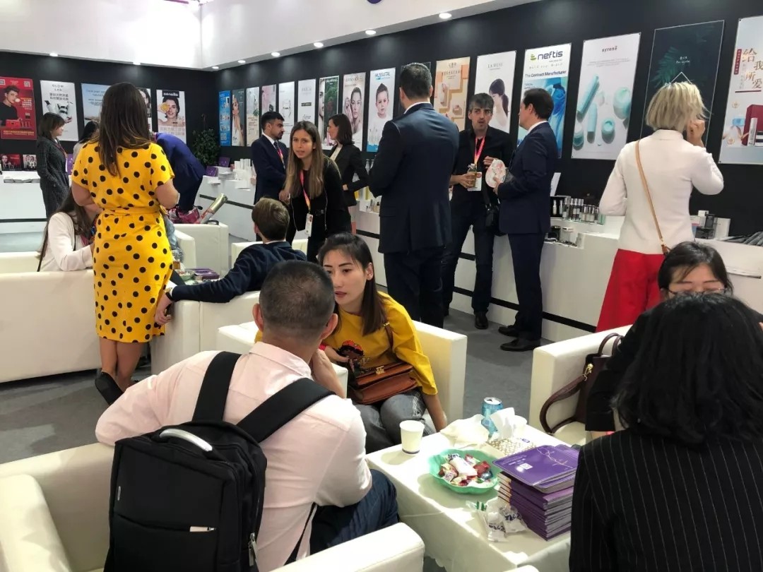 此次参展,中国美妆小镇也特意在展厅内设置了展柜,用来展示美妆小镇合作的中外企业的优秀产品,展厅内琳琅满目。