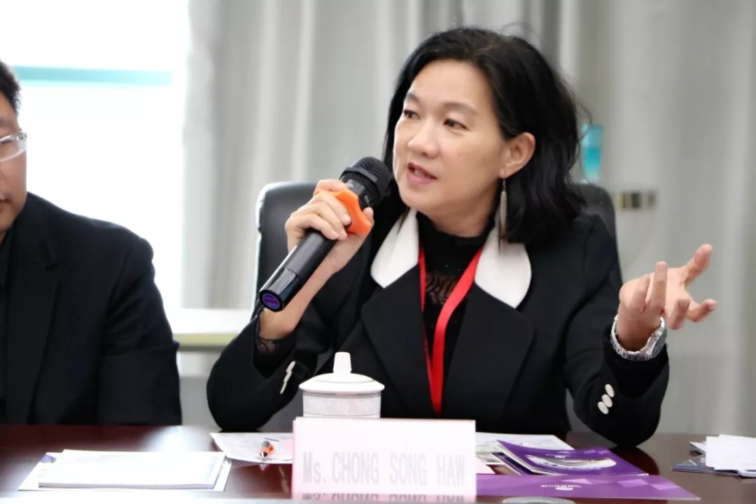 ▲法国美容化妆联合会主席&IBCBS学校校长Ms. Regine FERRERE作了如何加强两地学校交流情况介绍
