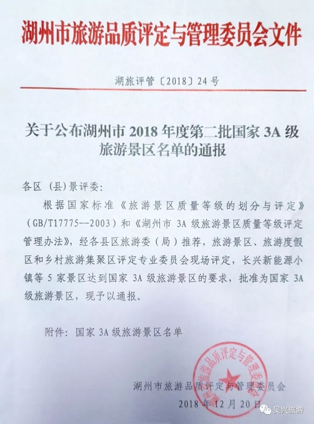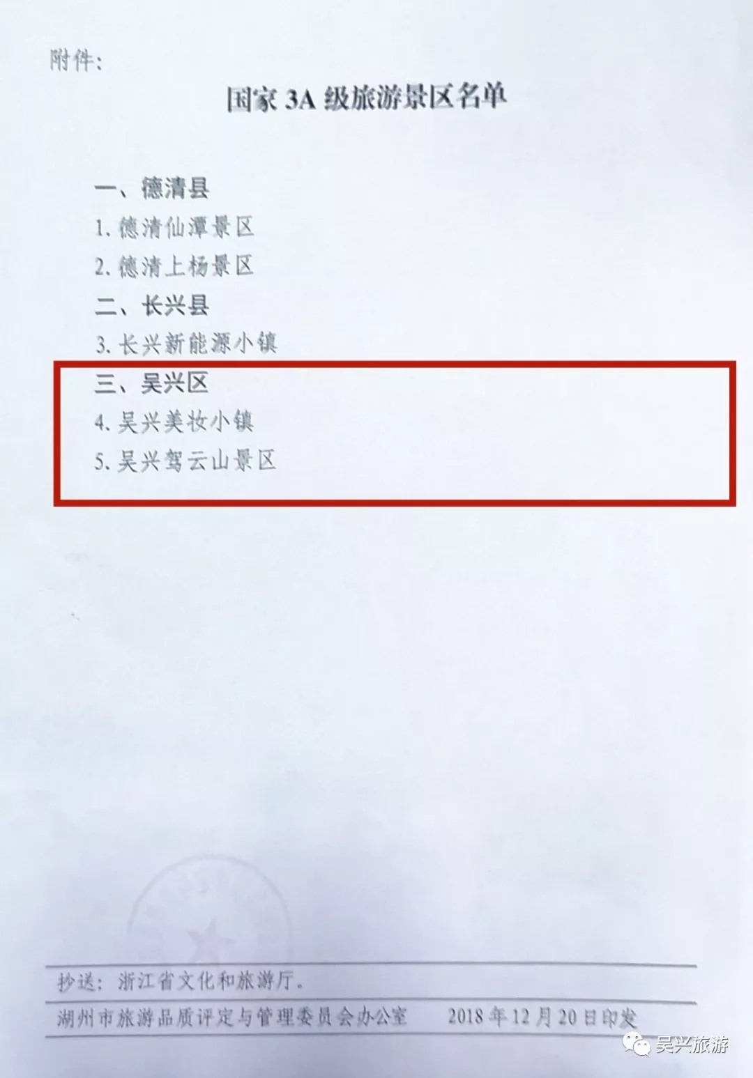 近日,经湖州市旅游品质评定与管理委员会现场评定,吴兴区美妆小镇、驾云山两家景区达到3A级景区的要求,被批准为国家3A级旅游景区。截至目前,我区共有国家3A级景区13家。