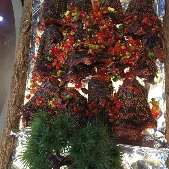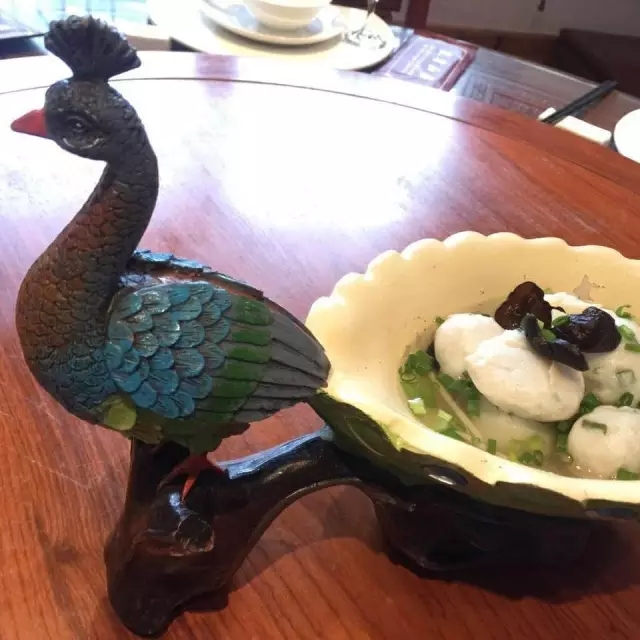 孔雀山庄特色菜之一“孔雀蛋(鱼丸)”、“椒盐大王蛇”
