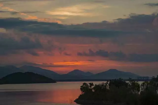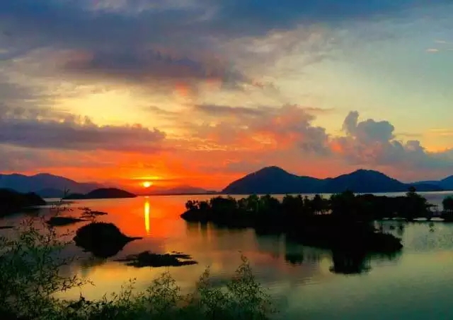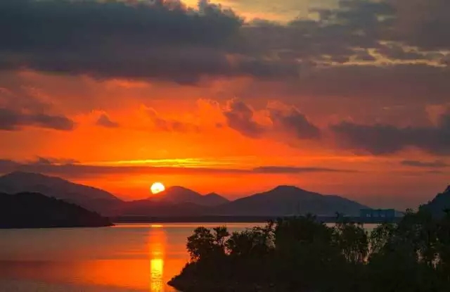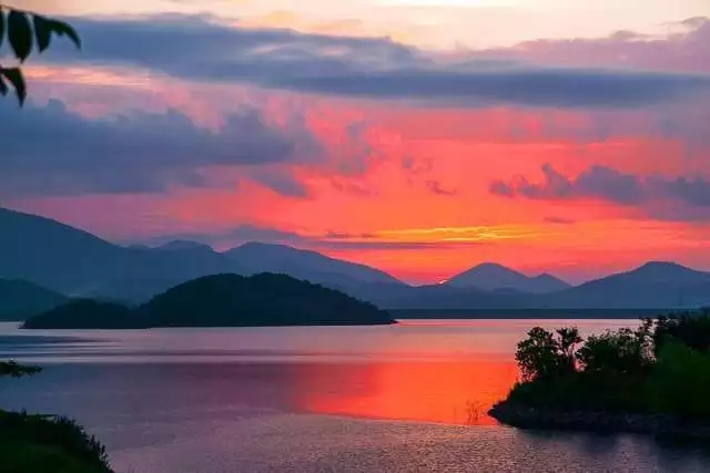 绵延的远山,宽阔的湖面,大概是日出的绝配。 等待一场日出,看初生的太阳唤醒蒙昧的尘世。 当清冷的雾纱逐渐散去,瑰丽的霞光尽染天空。