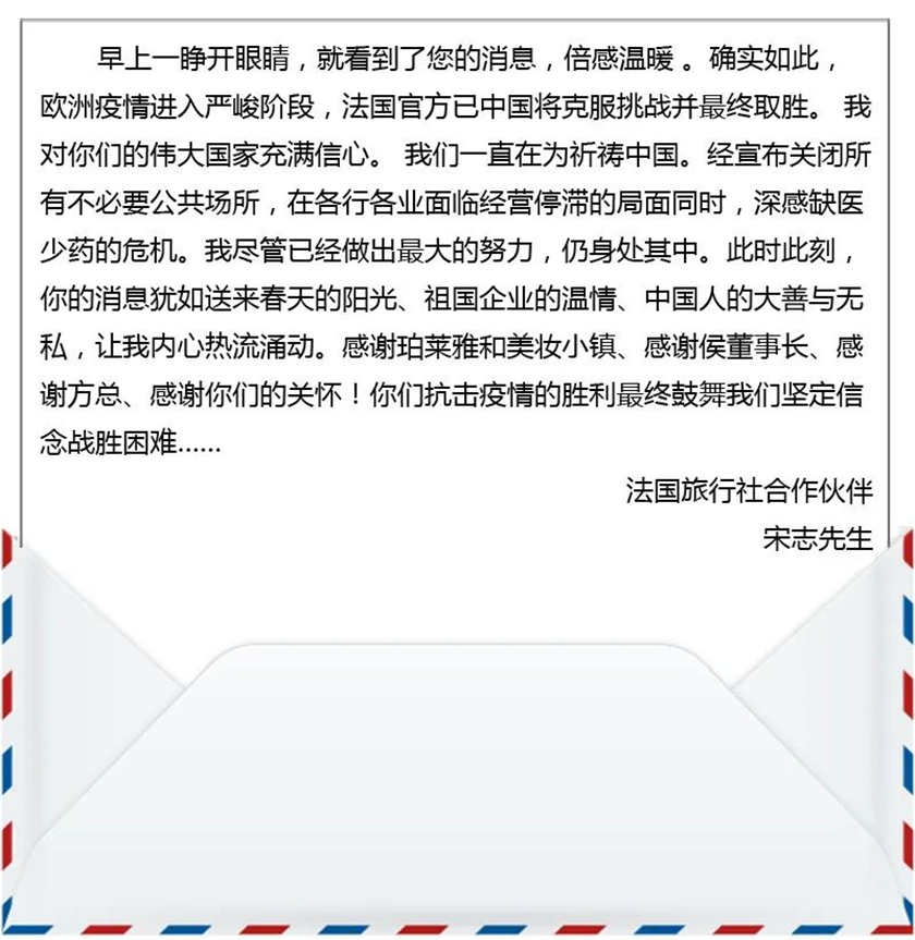 病毒无情,人间有爱。共有的地球,共同的命运。中国抗疫离不开世界的支持,世界抗疫缺不了中国的参与。面对突如其来的疫情,国际社会相互驰援、共克时艰,是人类命运共同体理念的又一次完美诠释。中国美妆小镇将继续发挥海外关系网,为全球抗疫提供力所能及的支持与帮助,助力打赢这场疫情!