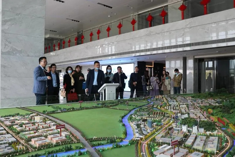 通过埭溪镇副镇长沈桦对沙盘的讲解,浙江省经信厅、浙江理工大学领导一行深入了解了中国美妆小镇的发展历程、近年来所取得的发展成果以及小镇二期规划蓝图。听完美妆小镇沙盘介绍后调研团一行就浙江省化妆品产业现状,有关政策和下一步计划等进行座谈交流。